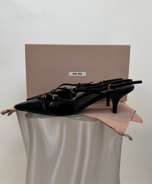 Miu Miu 55mm Buckle-Embellished Slingback Pumps — FULL SET