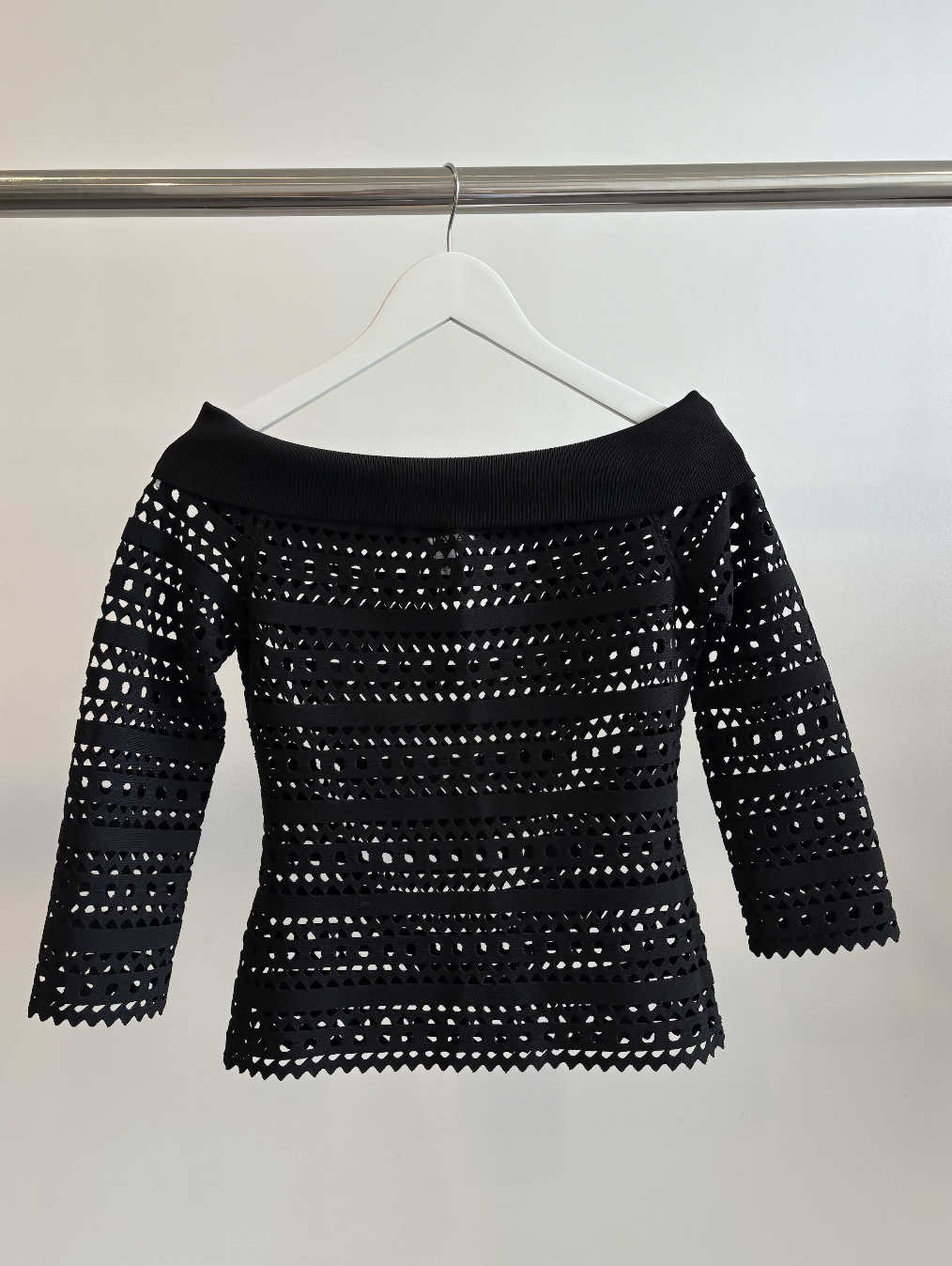 Alaïa Open-Knit Off-Shoulder Longsleeved Top