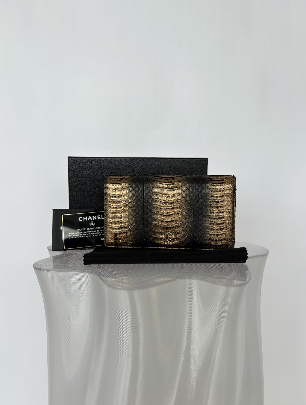 Chanel Black/Bronze Snakeskin CC Yen Wallet - FULL SET