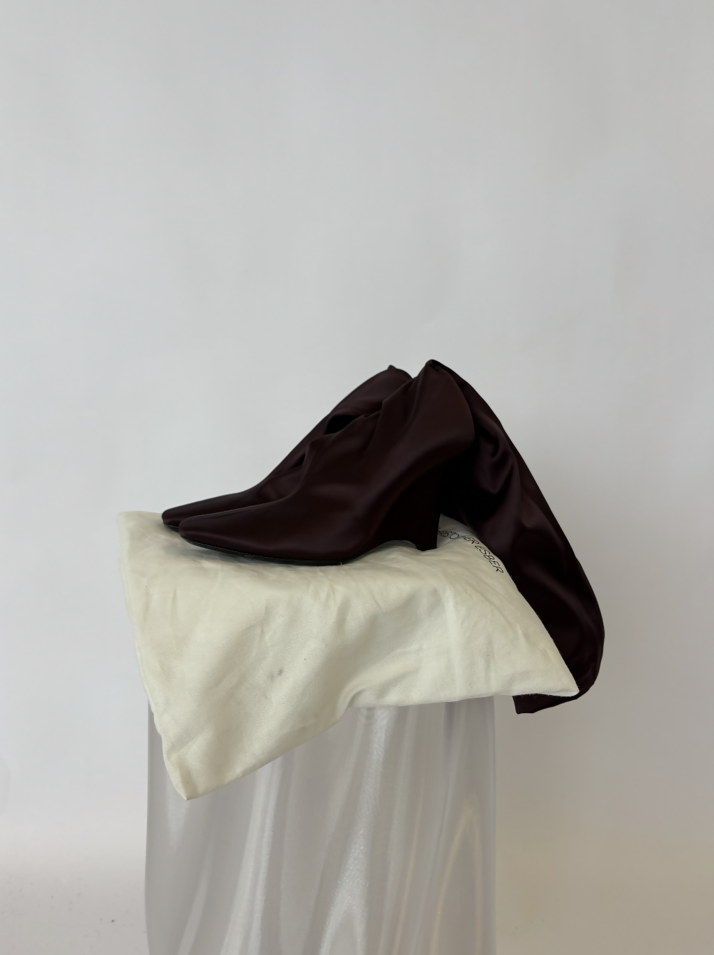 Stand-out style meets sleek design in these Christopher Esber “Avery” knee-high boots in a striking deep purple with a blue hue. Crafted with attention to silhouette and structure, they rise to knee height to elongate the leg and feature a clean, modern shape that transitions beautifully from day to night.