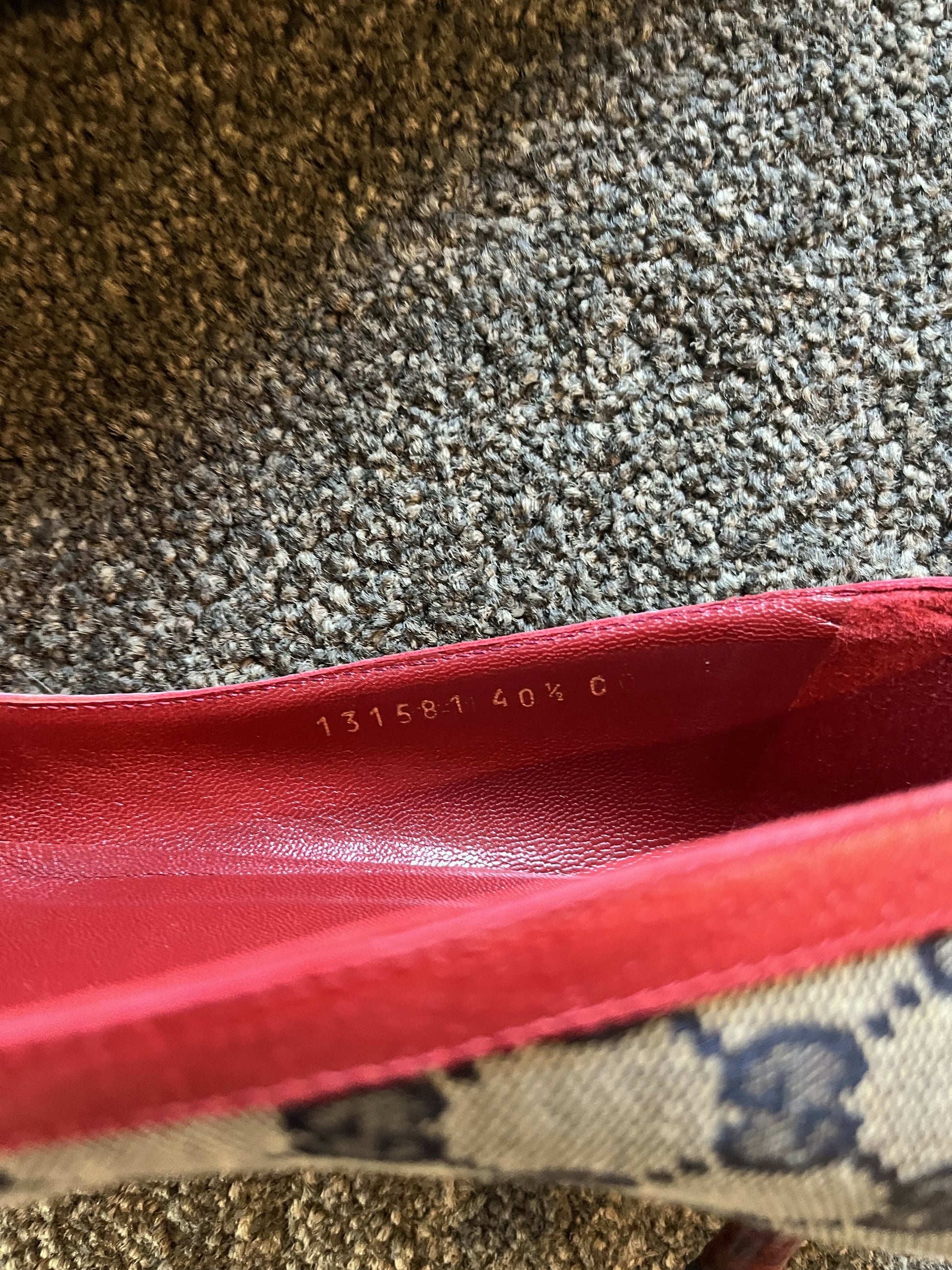 Gucci red and navy canvas kitten heels, with silver detail. In good condition. Sadly too big for me. Comes with dust bags and box. Size 40.5c