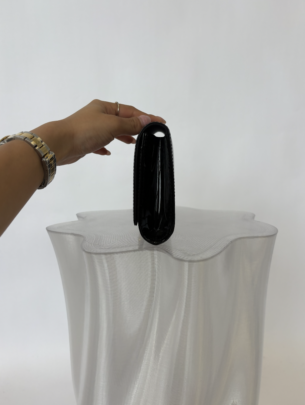 The Vernis Noir Pochette Louise EW Clutch embodies Louis Vuitton’s signature elegance in a compact form. Crafted from glossy patent leather with refined LV detailing, it offers a sleek design for both casual outings and evening events. Its versatility and polished aesthetic make it a must-have for collectors and everyday luxury wearers alike.