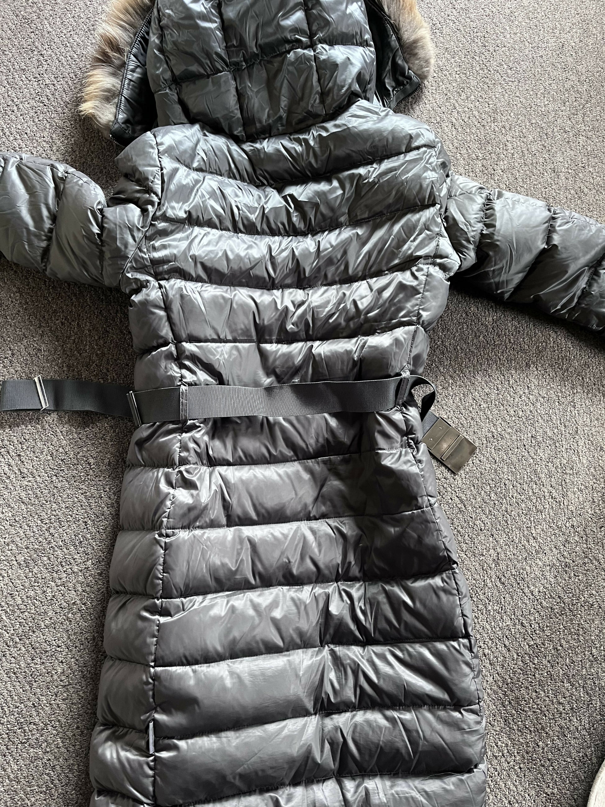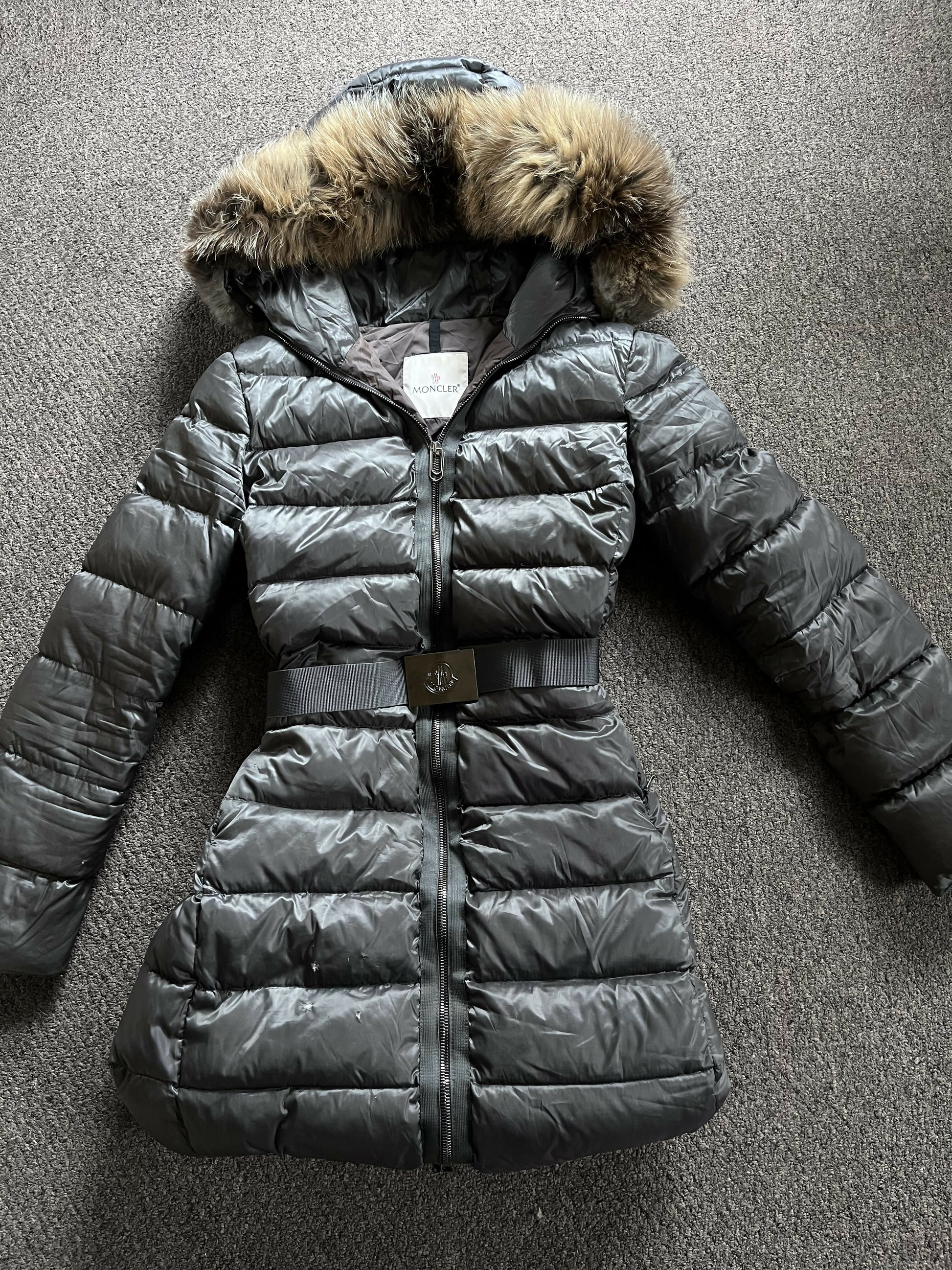 Size 1, Moncler grey Tinuiviel Giubbotto jacket with fur hood and belt. I have authenticated the jacket on the moncler website & it’s a match. Stunning jacket, originally was $4000nzd brand new but is now a few years old. the belt is adjustable so it can fit from XS-M. The jacket is still in pretty good condition despite the small flaws i have listed below.