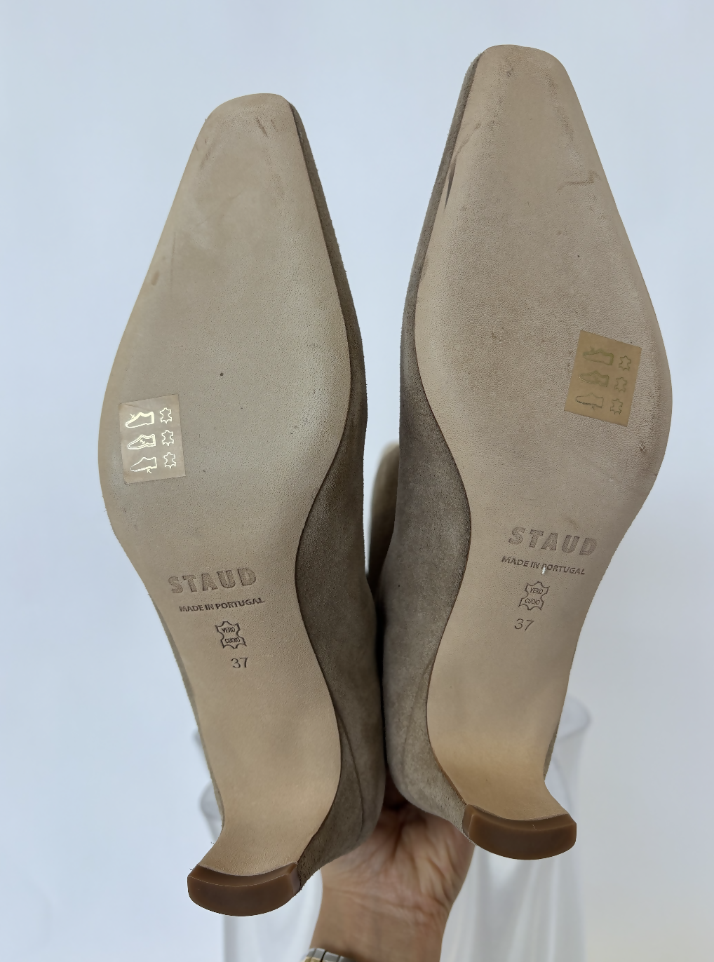 Refined and versatile, the Wally boots by Staud are crafted in soft suede and cut to a flattering knee-high silhouette. Designed with a sleek, streamlined shape, they offer effortless sophistication whether styled with dresses, skirts, or layered over denim. A timeless wardrobe staple, they transition seamlessly from day to night.