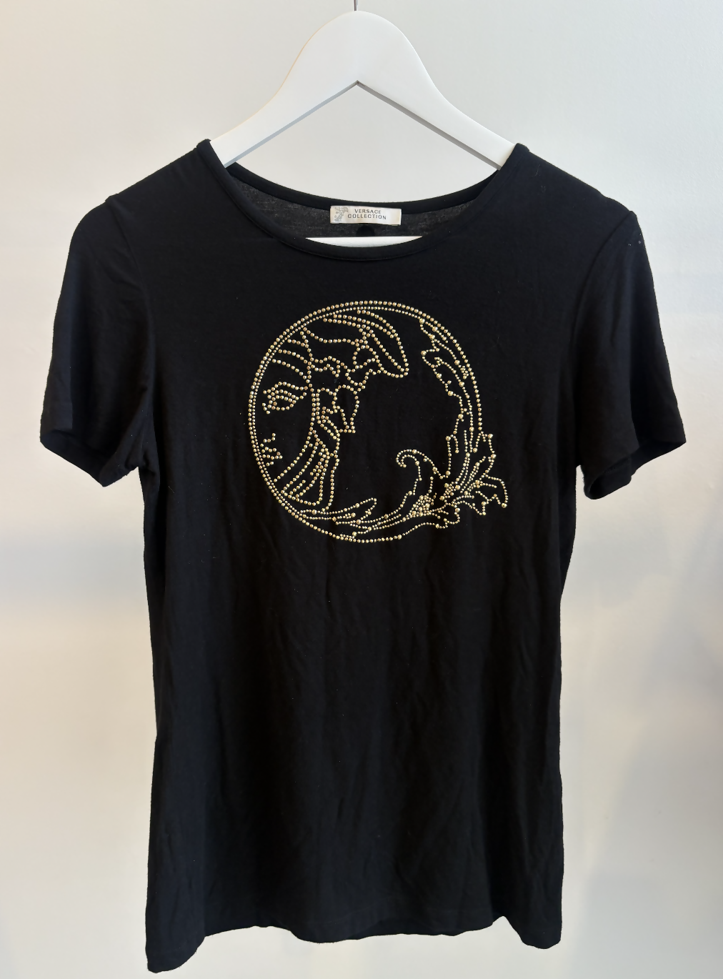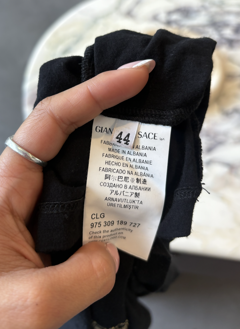 Good Condition Short sleeve black t-shirt with medusa emblem.