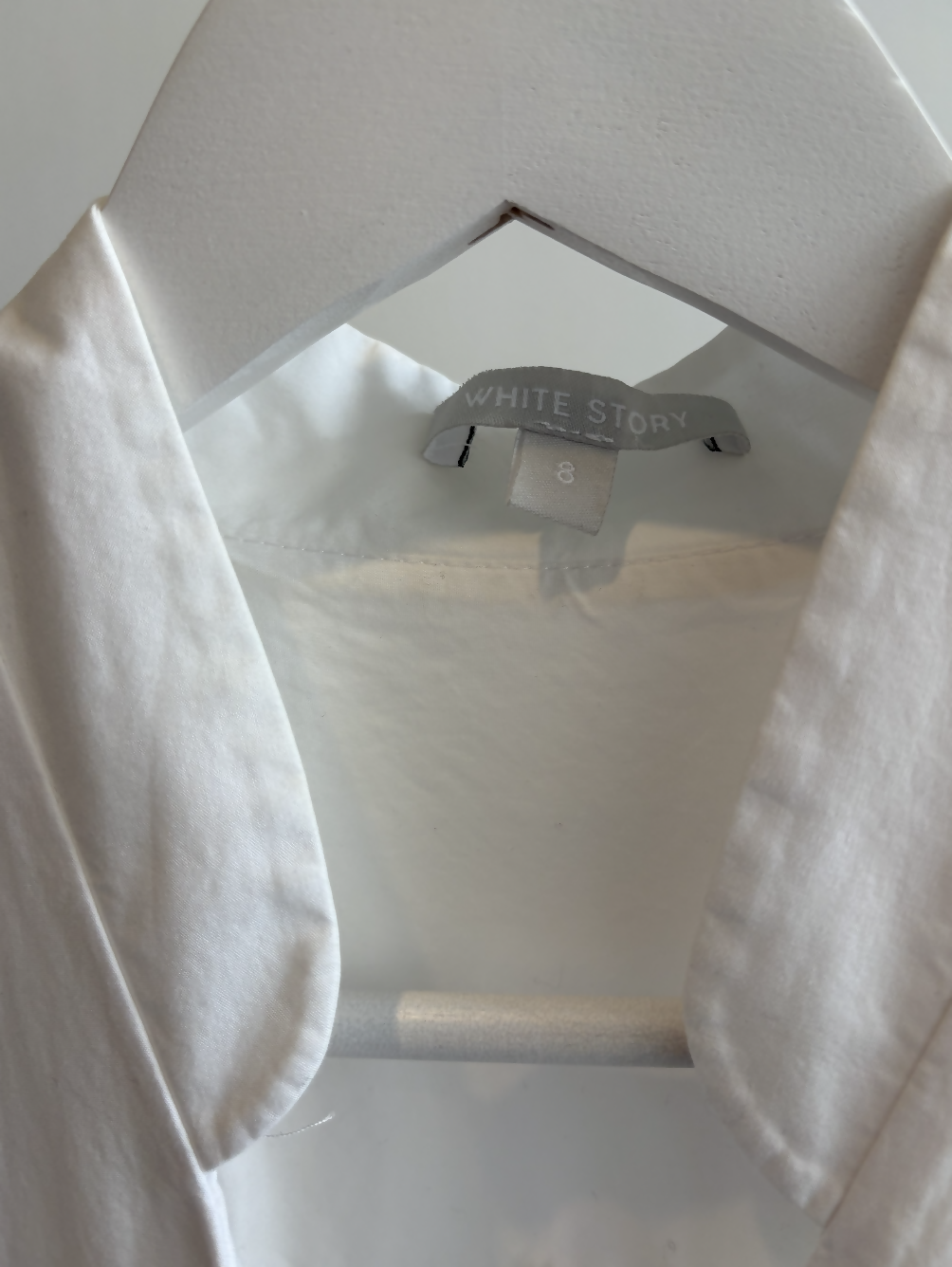 Effortlessly refined, this crisp white cotton midi dress from White Story features a sculpted, softly structured silhouette that blends modern minimalism with timeless femininity. The design showcases a clean V-neckline with subtle stand-collar detailing, gently gathered shoulders, and short sleeves with tailored cuff accents for a polished finish.